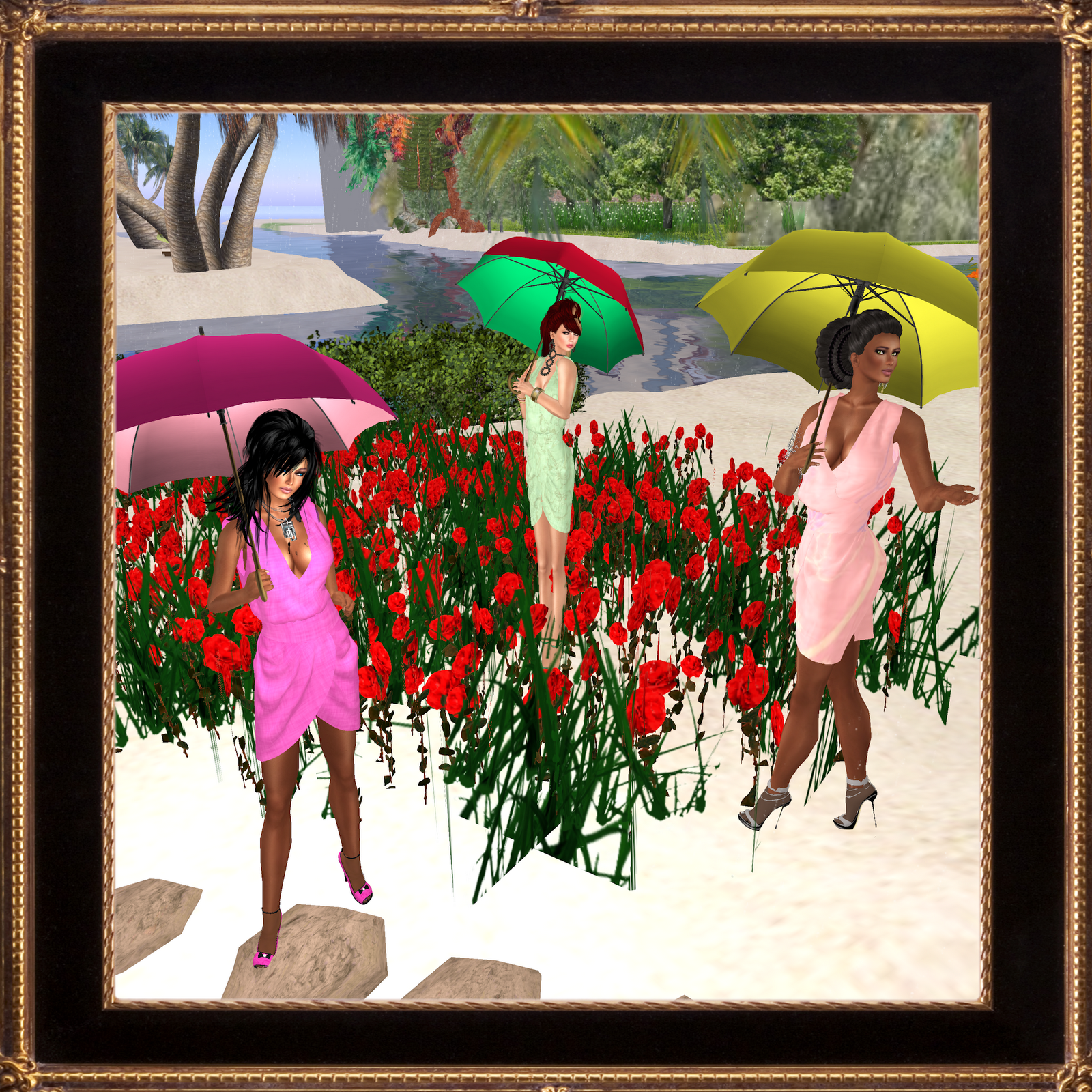 Charltina's blends the savvy of a wise business acumen and the loving relationships shared in a family. When I went to a photo shoot today for print modeling, there was a great deal of focus, hard work, and many things were accomplished as a result. However, this was not all that happened. Fellowship also occurred, and friendships strengthened. Second Life presents us all with odd little adversities, quirks none of us can predict, yet we know they will come. At the photo shoot that included the pretty Mint Mesh Wrap Dress and other colors as well modeled in the top picture by Charltina's Model Lady BillieRae, myself, and Lady Charltina (Designer and Owner of Charltina's), we went singing in the rain and conquered the glitches of Second Life together. All the while, we laughed and saved beautiful memories for future reflection. It's truly a gift when an environment becomes more than just a place to work.