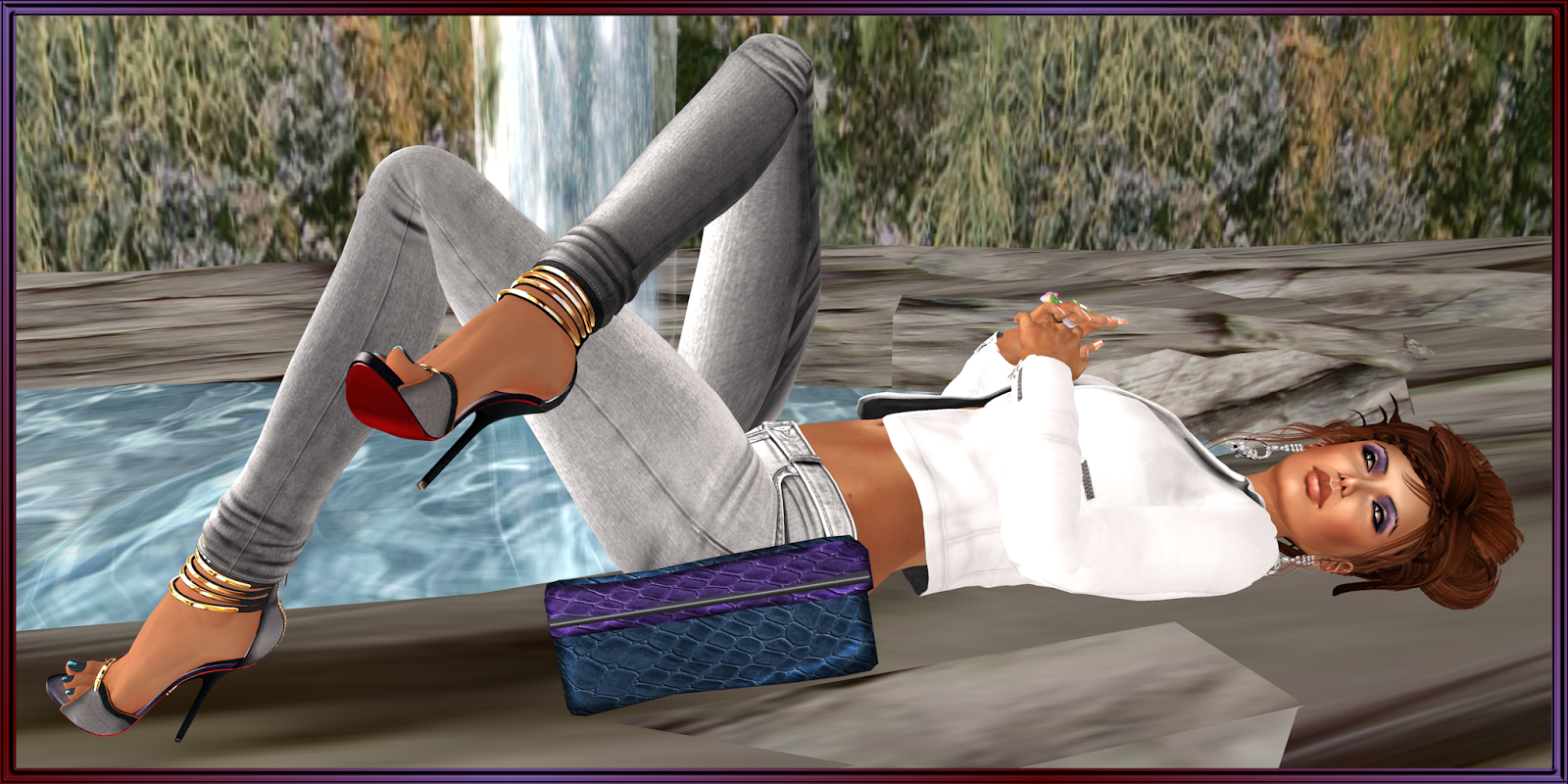 And when it was time to lay back, "Easy like a Sunday morning..." I kicked back and listened to the water fall at a favorite club. The stunning Fierce Model shoes from {{BSD}} entranced me when I got them and I couldn't wait to wear them. The small clutch came as a gift from the store as well. Otherwise, I'm in a very casual outfit and enjoying the quiet energy of this locale.